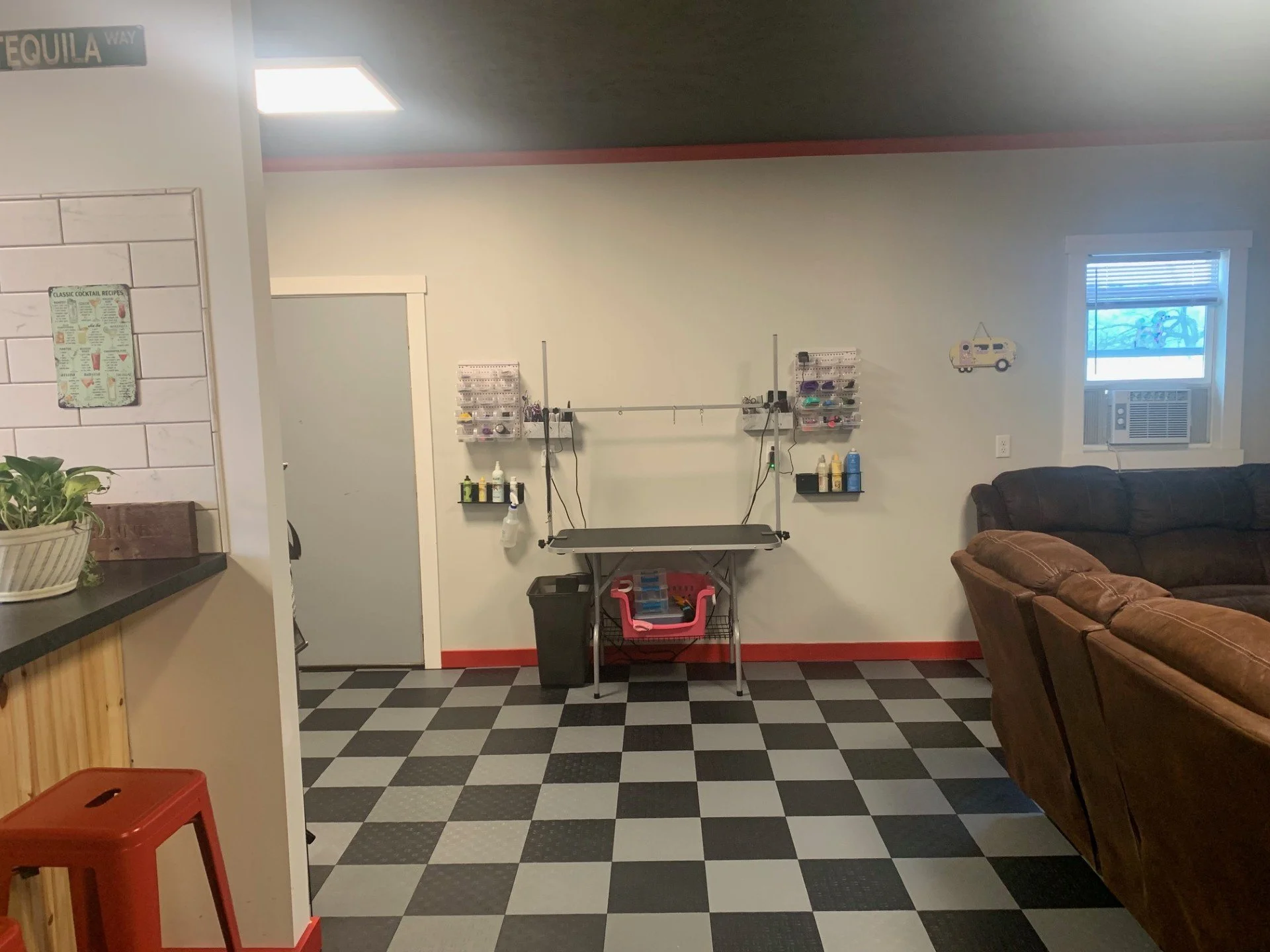* The salon — Make yourself at home. The salon is located in the corner of our family’s get together area. It has a full kitchen and bath, as well as a large screen TV and comfortable lounging and gaming area. This gives it a comfortable homelike feel.